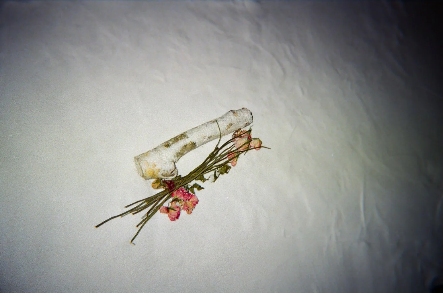 Mixed-media installation (hawthorn, birch, alder, salt, silver-leaf, plaster bandage, ventilation tubes)